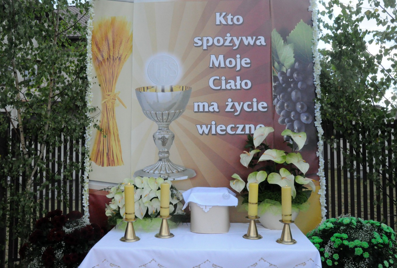 Chrystus ustanowił Sakrament Eucharystii w Wielki Czwartek jednak, z uwagi na trwający Wielki Post, Kościół dziękuje Bogu za ten dar podczas uroczystości Najświęteszego Ciała i Krwi Chrystusa zwanego potocznie Bożym Ciałem. Tego dnia wychodzimy z naszych świątyń w uroczystych procesjach do czterech ołtarzy by Chrystus nam błogosławił nasze domy, ulice naszych miast i wsi oraz by Jemu publicznie oddawać chwałę i dziękować za dar Eucharystii.