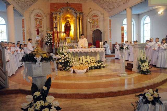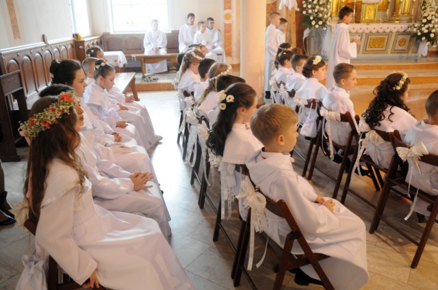 W niedzielę, 14 maja, druga grupa dzieci z klas trzecich przyszła do kościoła by w obecności swych rodzin po raz pierwszy przyjąć Pana Jezusa do swych serc.