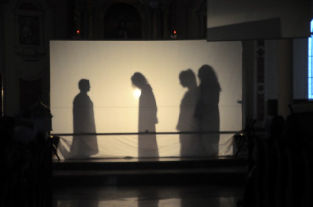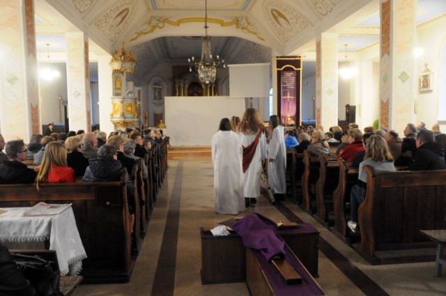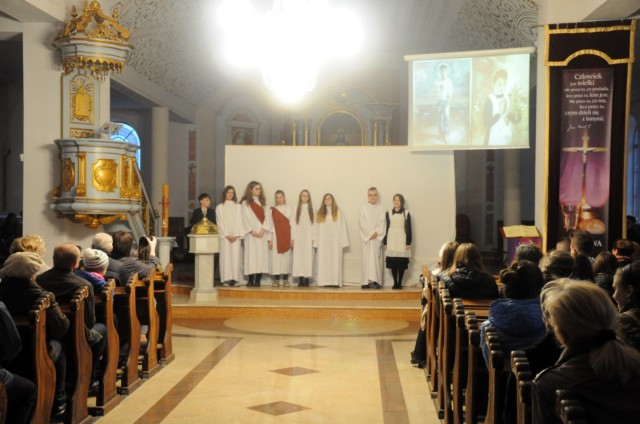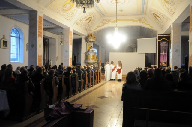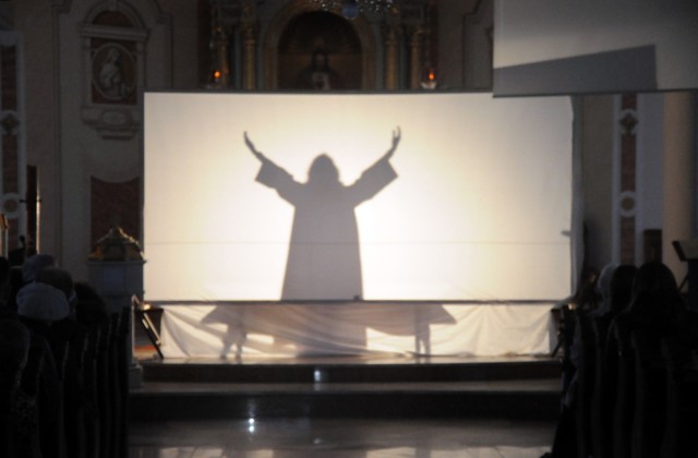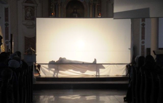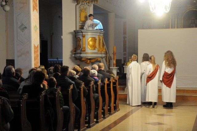 Wieczorem w Niedzielę Palmową nasza mlodzież zaprezentowała przedstawienie ukazujące Mękę i Śmierć Chrystusa.