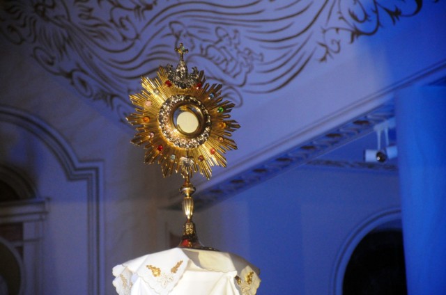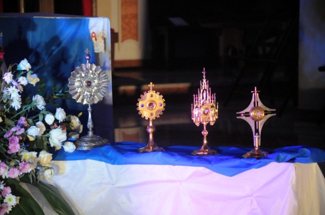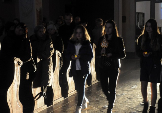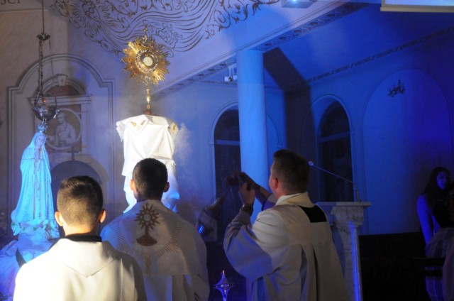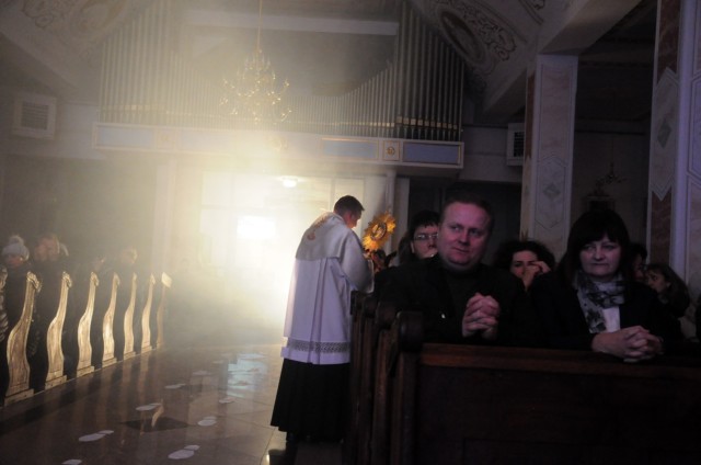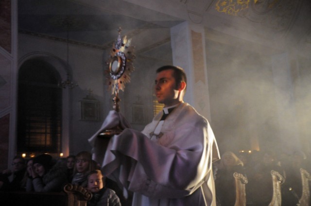 Kulminacyjnym punktem Nocy Świętych była adoracja i błogosławieństwo Najświętszym Sakramentem każdego z przybyłych do naszego kościoła.