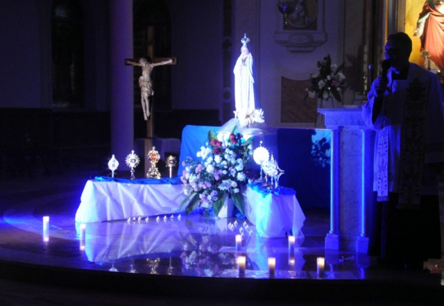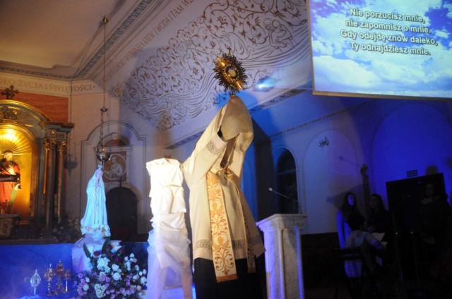 Tradycyjnie wydarzenie rozpoczęła prezentacja postaci świętych, których relikwie odwiedziły naszą świątynię (św. Joanna Beretta Molla, św. Faustyna, św. Mikołaj bp, św. Maksymilian Maria Kolbe, św. Jadwiga, św. Antoni, św. Filip Neri, św. Jan Paweł II, bł. ks Jerzy Popiełuszko). Tematem przewodnim tegorocznej nocy świętych było wspomnienie 100. rocznicy objawień fatimskich i w związku z tym część wieczoru była poświęcona uwielbieniu Boga razem z Maryją.