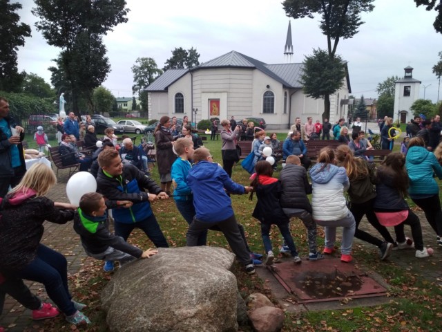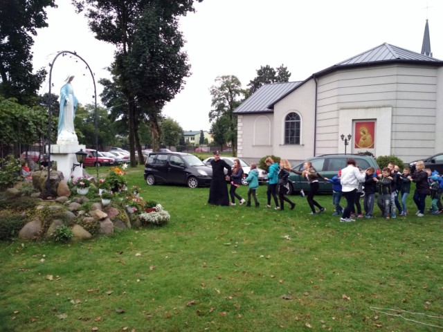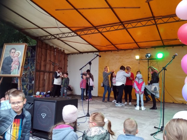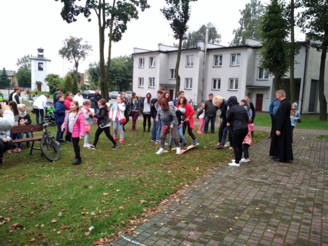Stało się już tradycją naszej parafii, iż na początku jesieni dzieci oraz młodzież wraz ze swoimi najbliższymi oraz kapłanami spotykają się na niezapomnianym popołudniu, któremu patronuje św. Stanisław Kostka. Nie inaczej było i w tym roku. Milusińscy swoje święto rozpoczęli od odmówienia Koronki do Bożego Miłosierdzia, wzięli udział w konkursie plastycznym kredą na betonie "św. Stanisław Kostka - wzór, który pragnę naśladować", utworzyli "żywe serce", radośnie tańczyli, podziwiali piękny występ parafialnej scholi, pokaz szczudlarza, z wielką ochotą przystąpili także do licznych, różnorodnych konkursów z nagrodami. Grillowane kiełbaski, cukrowa wata oraz słodycze to kolejna z przygotowanych przyjemności - tym razem kulinarnych! Wszyscy zebrani z szerokimi uśmiechami obiecali spotkać się na podobnym święcie już za rok!!!