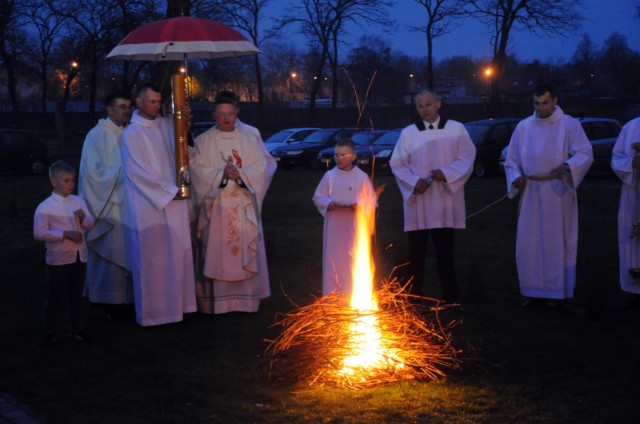 Pierwszym znakiem liturgii Wigilii Paschalnej jest ciemność. Ciemność jest symbolem śmierci. Pod osłoną nocy uaktywniają się siły zła, dokonuje się najwięcej grabieży, napadów, rozbojów, cudzołóstwa. W ciemności kolory tracą swoją wyrazistość, zacierają się kształty, zamiera życie. Ciemność musi być tłem dla liturgii paschalnej. Gdybyśmy w dzień rozpalili ognisko, światło z niego bijące byłoby mało czytelne. Ale gdy jest prawdziwa ciemność, to w pewnym momencie słup ognia ją rozdziera. Właśnie eksplozja światła jest drugim znakiem liturgii Wielkiej Nocy. Ogień jest symbolem samego Chrystusa, tak jak ciemność jest symbolem złego. Z taką symboliką spotykamy się w Biblii: począwszy od płonącego krzewu na pustyni, przez który objawił się Bóg Mojżeszowi, słup ognia, który prowadził Izraelitów, przez to światło, które rozpromieniało modlącego się Mojżesza, aż do światła w Wielką Noc. Nie ma świadków momentu zmartwychwstania, ale są świadkowie eksplozji światła z grobu. Światło pojawia się zawsze przy biblijnych teofaniach, objawieniach się Boga. Ogień i błyskawice mówią o obecności Boga. Właśnie w tę Noc Bóg zrywa kajdany zła, kajdany śmierci.