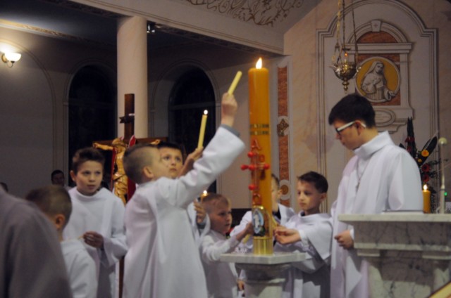 Od tej nocy biorą nazwę całe Święta Paschalne. Szczytem Świętego Triduum Paschalnego jest właśnie ta noc - WIELKA NOC. Świadomość znaczenia tej Nocy jest na ogół bardzo nikła. Święta Wielkanocne dla wielu chrześcijan kojarzą się z porankiem w Wielką Niedzielę. Tymczasem noc jest wtedy, gdy słońce zajdzie, a jeszcze nie wzejdzie i właśnie w tym czasie sprawujemy liturgię Wigilii Paschalnej. Nie wolno sprawować liturgii Wigilii Paschalnej przed zachodem słońca. Wszystkie obrzędy odbywają się w nocy. W tym czasie chrześcijanie nie śpią, lecz czuwają. Dla wierzących ta noc jawi się jako dzień, a my w ciągu dnia nie śpimy. Nie świeci nam słońce ziemskie, ale Jezus Chrystus, który jest światłem. Jest to już przedsmak Niebieskiego Jeruzalem, jak pisze św. Jan w Apokalipsie: "Nie potrzeba nam światła, bo lampą będzie Baranek." Jest to więc noc czuwania. Czuwanie było zawsze obecne we wspólnotach chrześcijańskich. Jest to również noc tajemna, czyli misteryjna. Schodzimy się po to, by doświadczyć wielkich tajemnic, dostępnych dla nas przez znaki, które musimy poznać i zrozumieć.