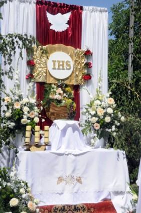 Chrystus ustanowił Sakrament Eucharystii w Wielki Czwartek jednak, z uwagi na trwający Wielki Post, Kościół dziękuje Bogu za ten dar podczas uroczystości Najświęteszego Ciała i Krwi Chrystusa zwanego potocznie Bożym Ciałem. Tego dnia wychodzimy z naszych świątyń w uroczystych procesjach do czterech ołtarzy by Chrystus nam błogosławił nasze domy, ulice naszych miast i wsi oraz by Jemu publicznie oddawać chwałę i dziękować za dar Eucharystii.