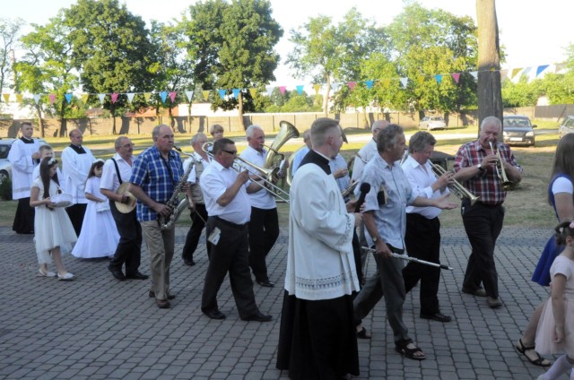 Tradycyjnie sumie odpustowej przewodniczył i homilię wygłosił ks. bp Ireneusz Pękalski, który jak dobrze pamiętamy pochodzi z naszej parafii. W uroczystej Eucharystii wzięło udział wielu kapłanów z okolicznych parafii oraz czcicieli Serca Jezusowego. Mszę uświetniła swoim występem orkiestra dęta z Parafii NMP Królowej Polski oraz nasz parafialny chór. Na zakończenie Eucharystii kapłani z wiernymi wzięli udział w procesji.