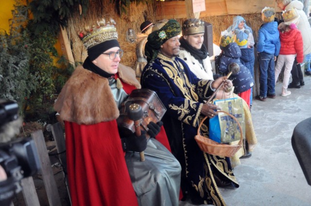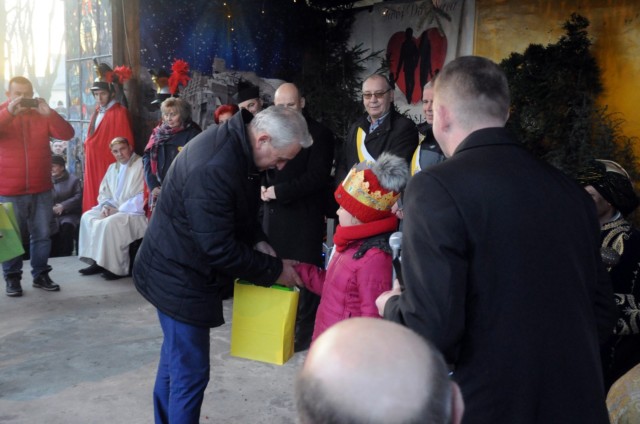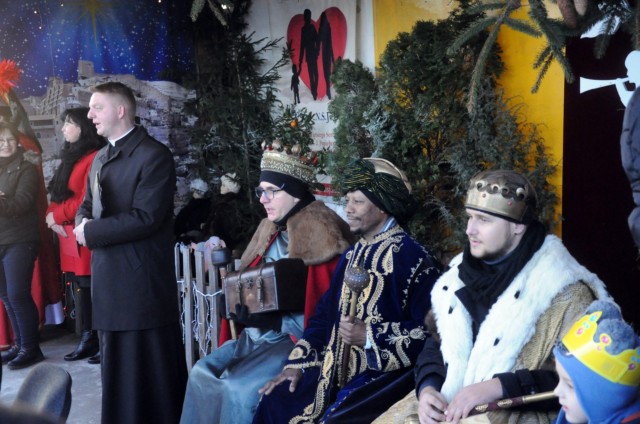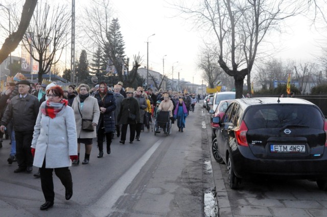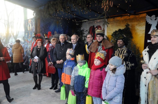 Tradycyjnie już z czterech parafii dekanatu tomaszowskiego przybyły trzy Orszaki aby złożyć dary Jezusowi na "scenie Narodzenia", przy naszej świątyni. W tym roku po raz pierwszy w role Świętej Rodziny wcieliła się rodzina p. Kwiatkowskich (Maryja - p. Sylwia, św. Józef - p. Robert, Jezus - Błażejek oraz pastuszek - Marysia). Przed przybyciem Orszaków, zgromadzeni przed sceną wysłuchali utworów przygotowanych przez zespół muzyczny. Przybywające Orszaki powitane zostały śpiewem kolęd oraz brawami. Przy okazji święta Trzech Króli zostały ogłoszone wyniki miejskiego konkursu na najpiękniejszą gwiazdę i szopkę. Nagrody wręczali zwycięzcom: prezydent miasta p. Marcin Witko i starosta tomaszowski p. Mirosław Kukliński. Dla wielu była to też ostatnia możliwość zobaczenia tegorocznej naszej "żywej" szopki. Późniejszy koncert kolęd i pastorałek zagrany w ramach Orszaku przyciągnął wiele osób do naszego kościoła. Ostatnim elementem świętowania była uroczysta Eucharystia.