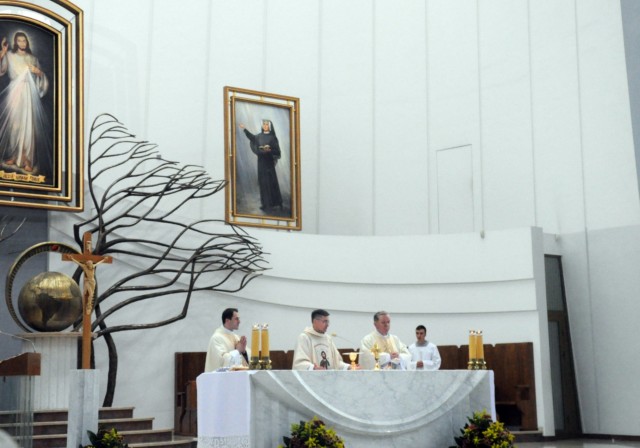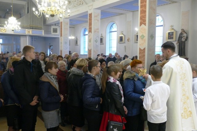 Natomiast dwa dni później, w niedzielę 28 10 b.r. podczas uroczystej Eucharystii sprawowanej pod przewodnictwem pochodzącego z Parafii NSJ ks. biskupa Ireneusza Pękalskiego w/w relikwie zainstalowano.