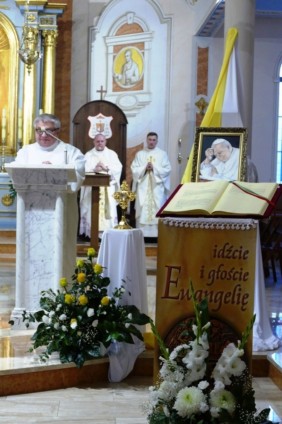W pięknej i wymownej homilii ks. biskup przypomniał wszystkim obecnym ponadczasowe nauczanie św. Jana Pawła II, począwszy od rozpoczęcia pamiętnego pontyfikatu aż po ostatnie dni życia Papieża - Polaka, ze szczególnym uwzględnieniem problematyki rodziny, a także wartości, jakie winny być przekazywane w procesie wychowawczym dzieciom i młodzieży. Co więcej, ks. biskup podkreślił także częste odwoływanie się Jana Pawła II do Serca Jezusowego, które bez wątpienia było dla niego prawdziwym źródłem życia i świętości.