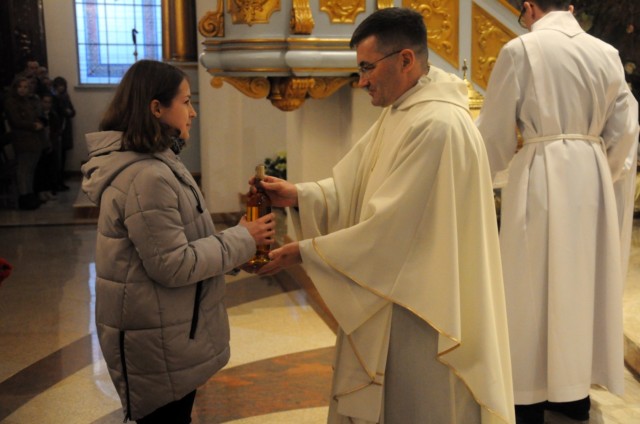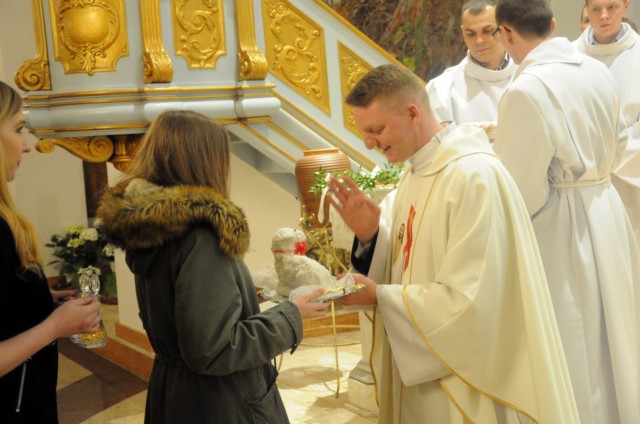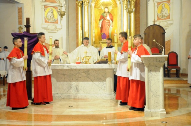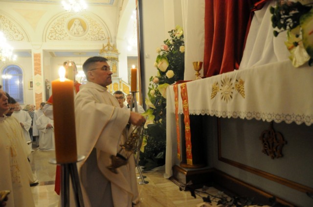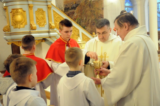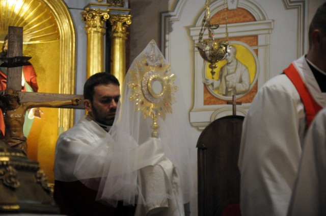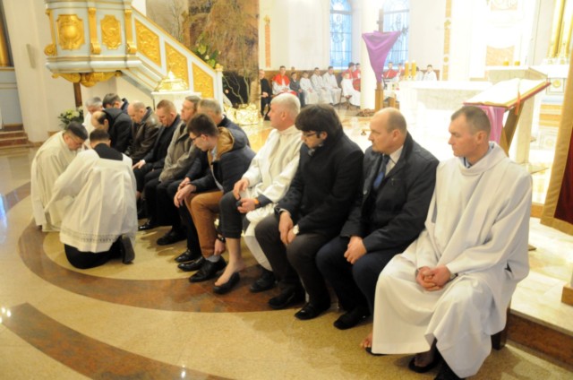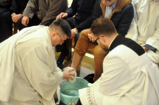 W Wielki Czwartek wspominamy wydarzenia z Ostatniej Wieczerzy. Pan Jezus ustanowił wtedy sakrament Eucharystii i Kapłaństwa. W czasie Mszy Wieczerzy Pańskiej, na pamiątkę obmycia nóg Apostołom przez Chrystusa, główny celebrans obmywa nogi 12 mężczyznom, aby podkreślić służebny charakter kapłaństwa. W tym roku w naszej parafii do tego znaku zostali zaproszeni przedstawiciele Rady Parafialnej. Tego dnia w naszym kościele wierni przyjmują komunię świętą pod dwoma postaciami. Msza Wieczerzy Pańskiej kończy przeniesieniem Najświętszego Sakramentu do kaplicy przechowania i rozpoczyna się Wielki Piątek.