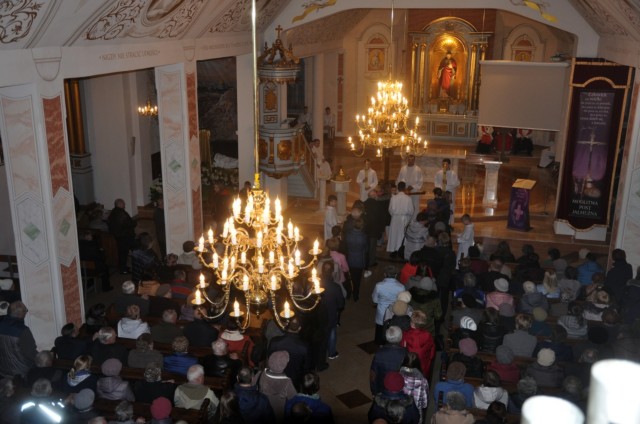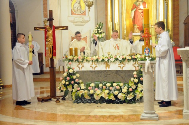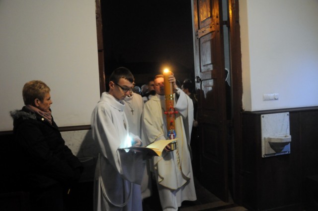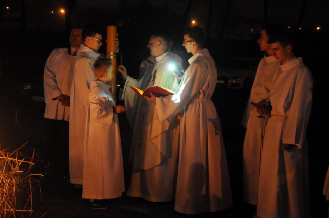 W sobotni wieczór, po zachodzie słońca, rozpoczyna się Wielka Noc. O godzinie 20 uczestniczymy w Liturgii Wigilii Paschalnej. Składa się ona z 4 części: Liturgii Światła (podczas której następuje poświęcenie ognia), Liturgii Słowa (ukazującą całą historię Zbawienia), Liturgii Chrzcielnej (podczas której zostają odnowione przyrzeczenia chrzcielne) i Liturgii Eucharystycznej (podczas której przyjmujemy Komunię Świętą - pokarm na życie wieczne). Obchody Wielkiej Nocy kończymy rano w Niedzielę Zmartwychwstania Pańskiego uczestnicząc w procesji rezurekcyjnej i ogłaszając całemu światu, że Chrystus prawdziwie zmartwychwstał.