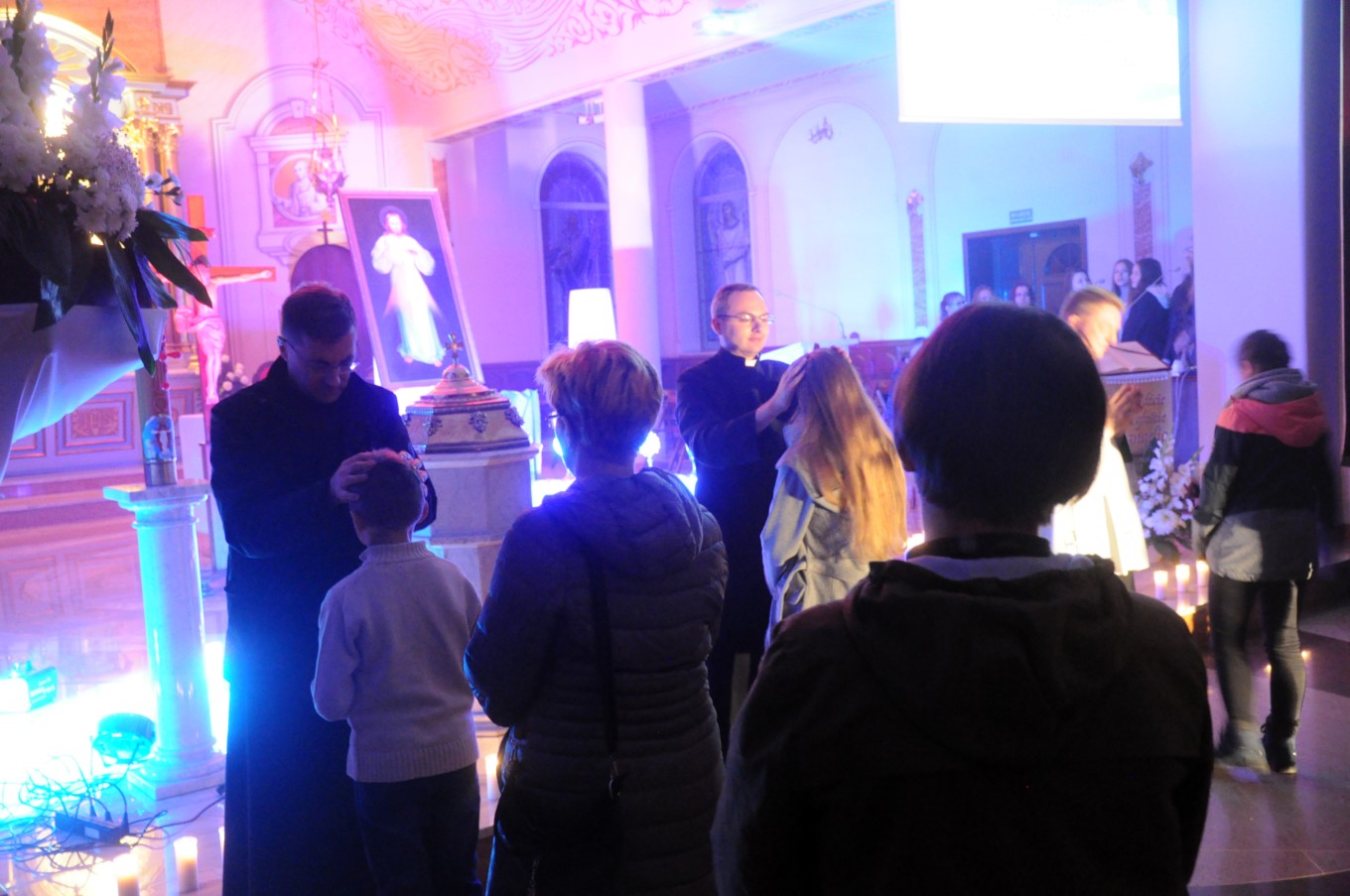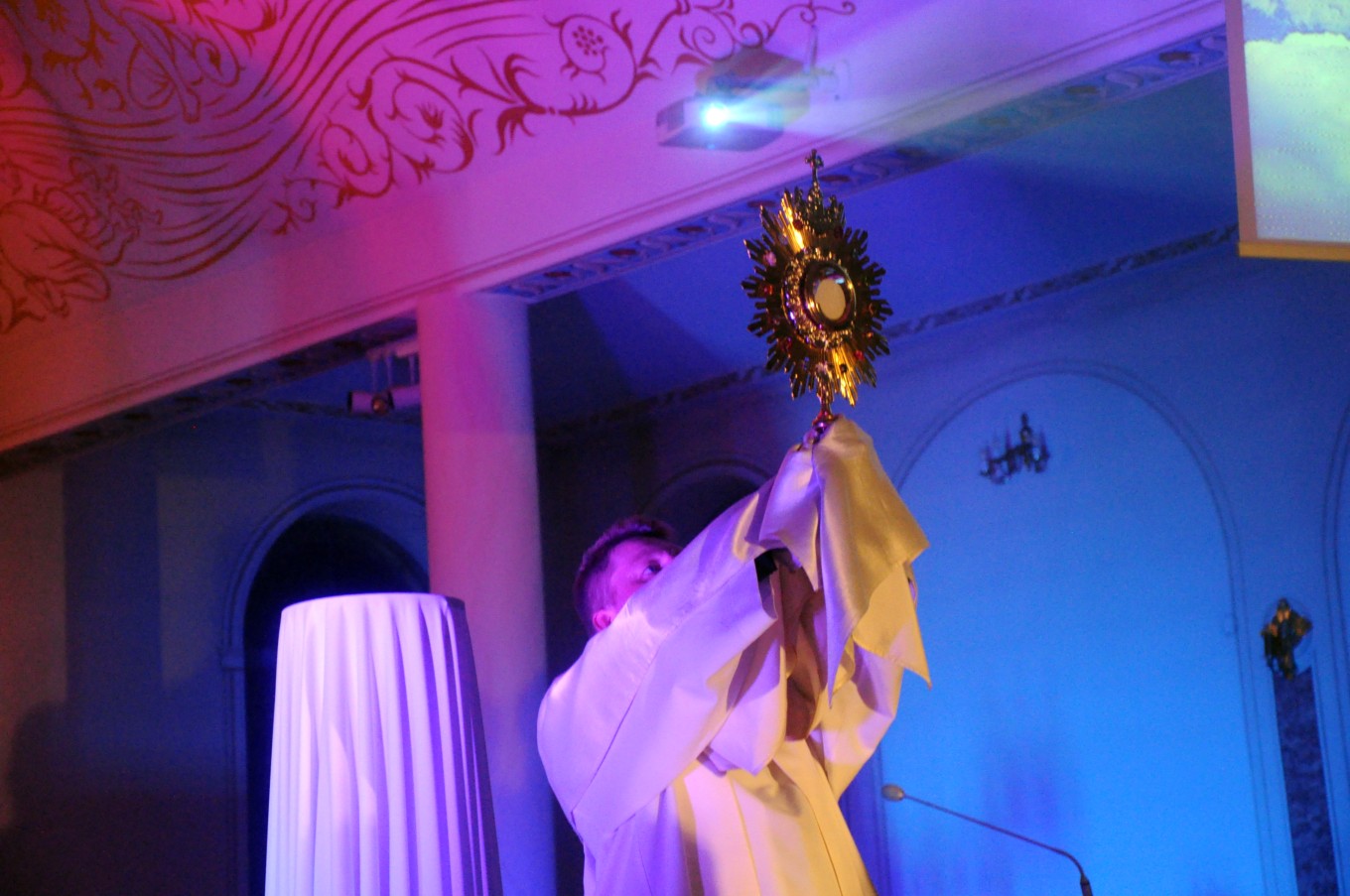 Po tak podniosłym momencie przyszła pora na zaprezentowanie pantomimy ewangelizacyjnej ph: „Uwolnij mnie!”, w której główne role brawurowo odegrała młodzież NSJ wraz ze swoim ks. opiekunem – Piotrem Kępniakiem, otrzymując za swój artystyczny wysiłek w pełni zasłużone, gromkie brawa! Co ważne, uczestnicy Tomaszowskiej Nocy Świętych wzmocnieni zostali Duchem Świętym, poprzez gest nałożenia kapłańskich dłoni, otrzymali również błogosławieństwo Najświętszym Sakramentem.
