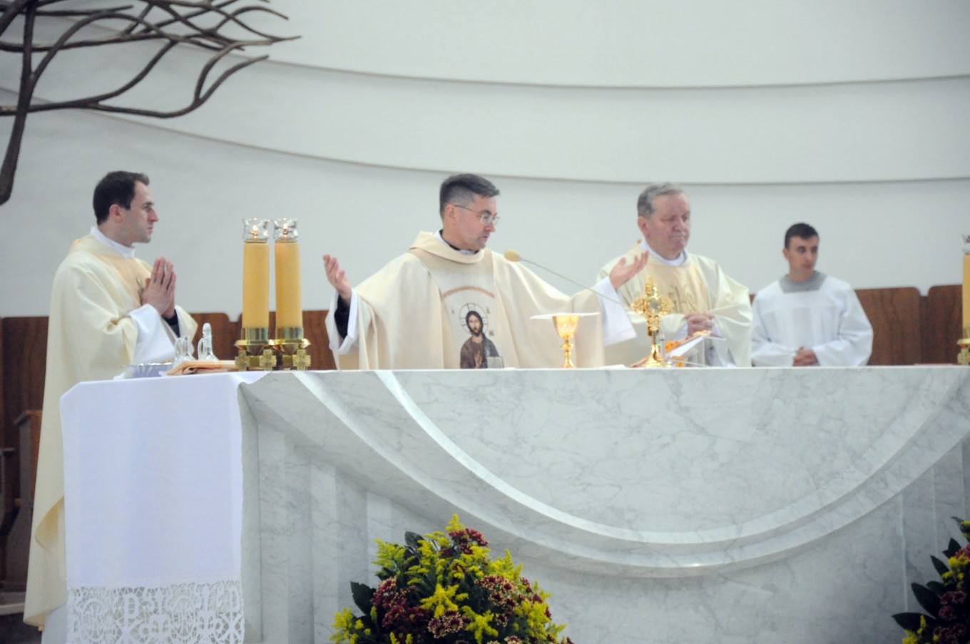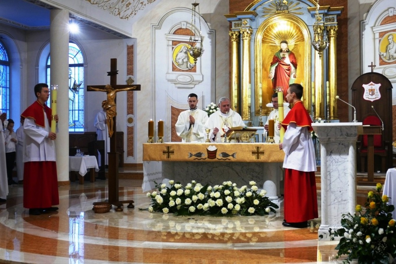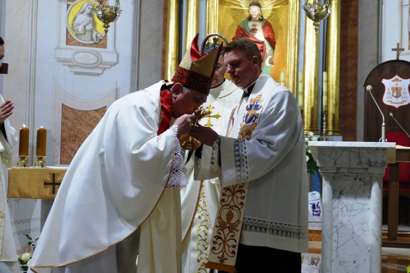 Natomiast dwa dni później, w niedzielę 28 10 b.r. podczas uroczystej Eucharystii sprawowanej pod przewodnictwem pochodzącego z Parafii NSJ ks. biskupa Ireneusza Pękalskiego w/w relikwie zainstalowano.