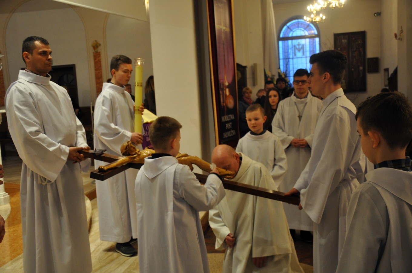 Wielki Piątek to dzień, w którym nie odprawia się Mszy Świętej. Liturgia wielkopiątkowa składa się z: Liturgii Słowa, adoracji Krzyża i obrzędów Komunii Świętej konsekrowanej dnia poprzedniego. Jest to dzień ciszy i skupienia. Oprócz śpiewów w kościele używane są tylko kołatki, by podkreślić pokutny charakter Wielkiego Piątku. Na zakończenie Liturgii, Najświętszy Sakrament przenoszony jest do Grobu Pańskiego, gdzie trwa adoracja aż do rozpoczęcia obrzędów Wigilii Paschalnej.
