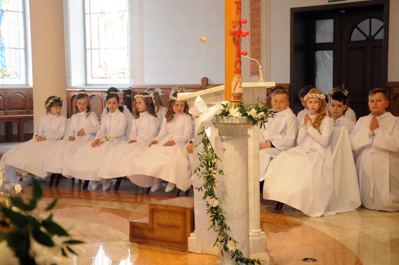 W niedzielę, 5 maja 2019 roku, w naszym kościele podczas mszy św. sprawowanej o godz. 1030 i 1200, dwie grupy dzieci klas trzecich przystąpiły do I Komunii Świętej.