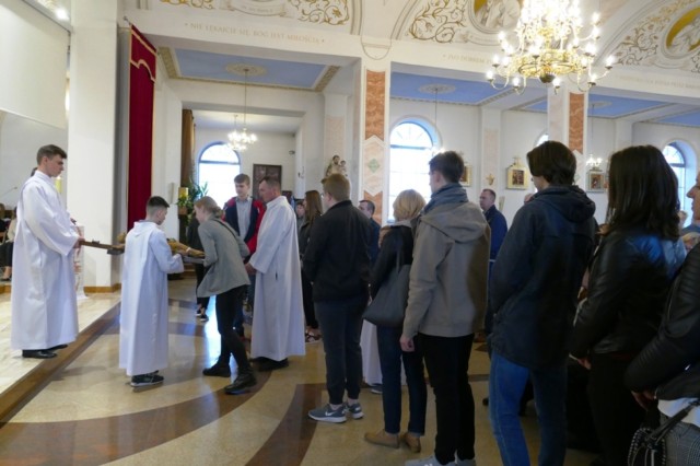 Wielki Czwartek to wspomnienie wydarzeń z Wieczernika - ustanowienie sakramentów: Eucharystii i kapłaństwa. Sprawowana jest uroczysta Msza Wieczerzy Pańskiej. Służebny charakter posługi kapłańskiej przypomina umycie nóg 12 mężczyznom przez kapłana na pamiątkę obmycia nóg Apostołom przez Pana Jezusa. Jest to dzień w którym wierni mogą przyjmować Komunię pod dwoma postaciami. Msza kończy się przeniesieniem Eucharystii do kaplicy przechowania.