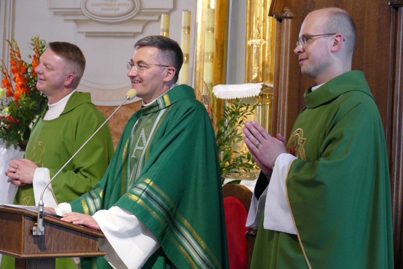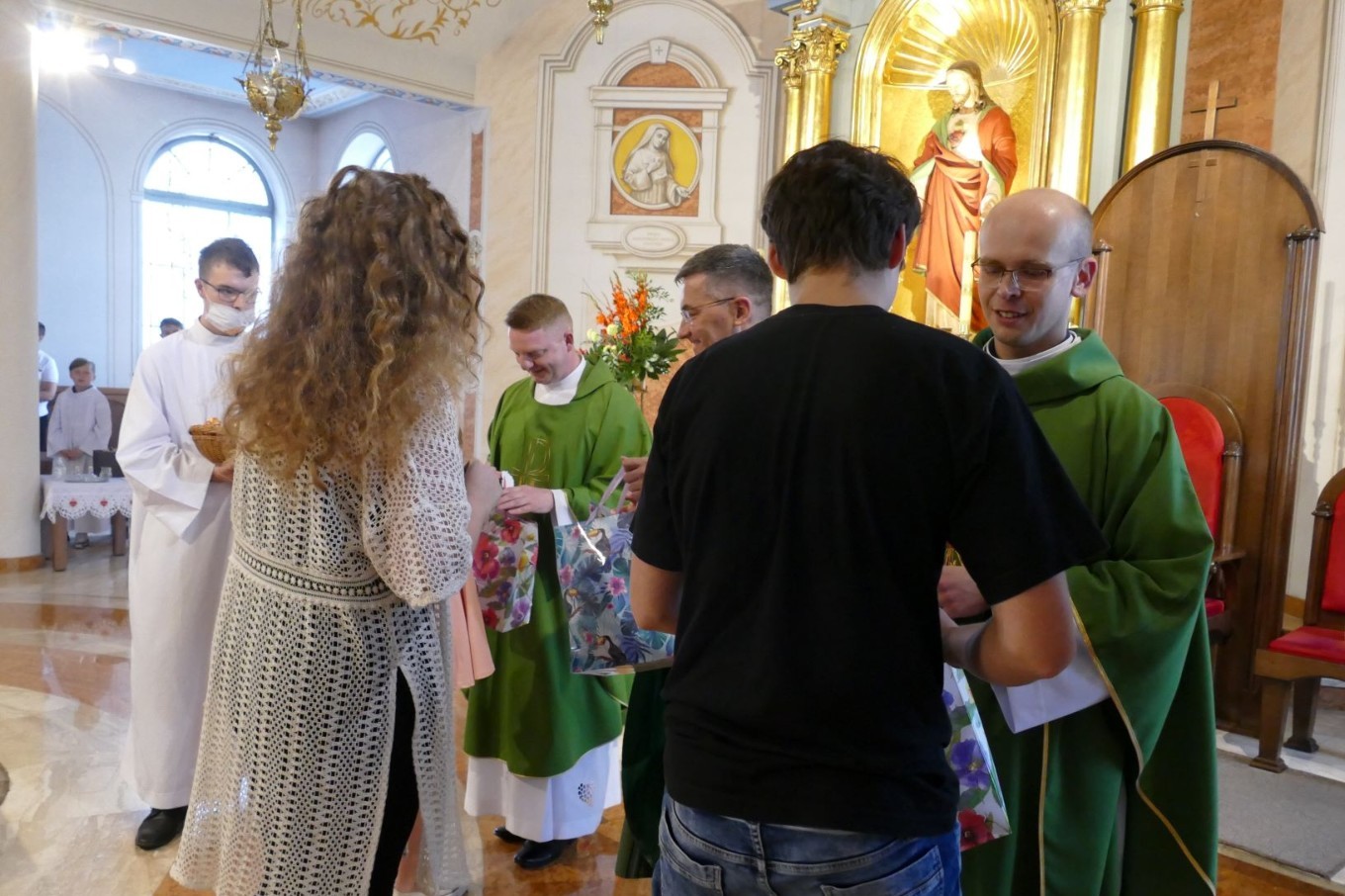 W wygłoszonym Słowie Bożym ks. Piotr przypomniał jakże ważną prawdę, iż to Pan wprowadza ład i porządek w ludzkie życie, jeżeli Bóg jest na pierwszym miejscu, wtedy wszystko jest na właściwym miejscu! Patroni naszych Drogich Solenizantów: św. Ireneusz oraz Apostołowie: św. Piotr i św. Paweł, swoim męczeństwem w jakże wymowny sposób potwierdzili wybór Boga jako centrum swojego życia. Na koniec mszy świętej liczne delegacje złożyły kapłanom najpiękniejsze i najserdeczniejsze, płynące z głębi serca życzenia (w przypadku scholi młodzieżowej, która wraz z panią organistką animowała śpiew podczas sumy były to nawet życzenia muzyczne!). Co więcej, uroczysty dzień imienin stał się także doskonałą okazją do podziękowania Naszym Księżom za ich wszelki trud i piękną posługę w kościele. Po zakończonej Eucharystii ks. Paweł, ks. Piotr oraz ks. Ireneusz zaprosili wszystkich wiernych na słodki poczęstunek, przyjmując jednocześnie dalszą część najserdeczniejszych życzeń.