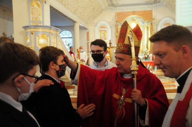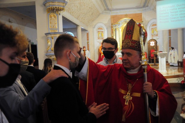 Poniedziałek 8 czerwca br., był wyjątkową datą dla młodzieży z naszej Parafii. Tego dnia bowiem z rąk ks. biskupa Ireneusza Pękalskiego przyjęli oni sakrament dojrzałości chrześcijańskiej - czyli bierzmowania.