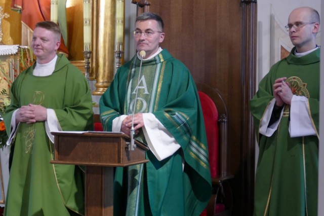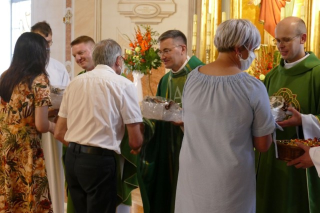 W wygłoszonym Słowie Bożym ks. Piotr przypomniał jakże ważną prawdę, iż to Pan wprowadza ład i porządek w ludzkie życie, jeżeli Bóg jest na pierwszym miejscu, wtedy wszystko jest na właściwym miejscu! Patroni naszych Drogich Solenizantów: św. Ireneusz oraz Apostołowie: św. Piotr i św. Paweł, swoim męczeństwem w jakże wymowny sposób potwierdzili wybór Boga jako centrum swojego życia. Na koniec mszy świętej liczne delegacje złożyły kapłanom najpiękniejsze i najserdeczniejsze, płynące z głębi serca życzenia (w przypadku scholi młodzieżowej, która wraz z panią organistką animowała śpiew podczas sumy były to nawet życzenia muzyczne!). Co więcej, uroczysty dzień imienin stał się także doskonałą okazją do podziękowania Naszym Księżom za ich wszelki trud i piękną posługę w kościele. Po zakończonej Eucharystii ks. Paweł, ks. Piotr oraz ks. Ireneusz zaprosili wszystkich wiernych na słodki poczęstunek, przyjmując jednocześnie dalszą część najserdeczniejszych życzeń.