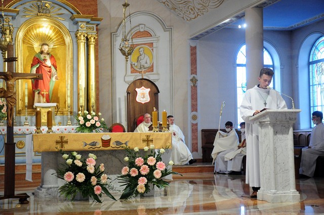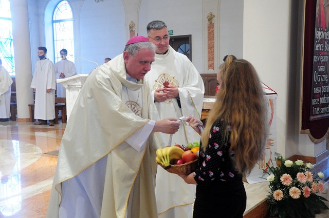 Uroczystej sumie odpustowej już tradycyjnie przewodniczył pochodzący z naszej Parafii ks. biskup Ireneusz Pękalski. W wygłoszonej homilii nawiązał on do tekstów Liturgii Godzin w/w dnia, jak i do słów Wielkiego Papieża - Polaka Jana Pawła II (którego setną rocznicę urodzin obchodzimy w tym roku) wygłoszonych podczas pielgrzymki, a mówiąc szczegółowo - podczas Nabożeństwa Czerwcowego w Elblągu 6 czerwca 1999 roku. Serce Jezusowe to źródło życia i świętości, wielka miłość Boga do każdego człowieka, to także źródło naszego odkupienia. Istotnym jest, jak na ową - wielką i bezgraniczną miłość Boga odpowiadamy...Czy zachowujemy wszelkie przykazania, czy nasze codzienne uczynki/wybory nie mijają się z deklarowanymi słowami modlitw, czy w razie jakiekolwiek: słabości, zwątpienia, upadku szukamy ratunku w konfesjonale - w sakramencie Spowiedzi Świętej będącym swoistym Sanktuarium Bożego Miłosierdzia? W dalszym rozważaniu ks. biskup przypomniał obecnym niezwykłą postać - ks. kanonika Kazimierza Gadzinowskiego, byłego proboszcza naszej parafii, który zmarł 19 czerwca 1970 roku - czyli dokładnie 50 lat temu...To właśnie w/w duchowny wprowadził wspomnianą wcześniej nieustającą Nowennę do Najświętszego Serca Jezusowego, co ważne, zachęcał także całe rodziny do oddania się pod opiekę Bożemu Sercu...