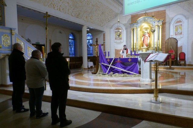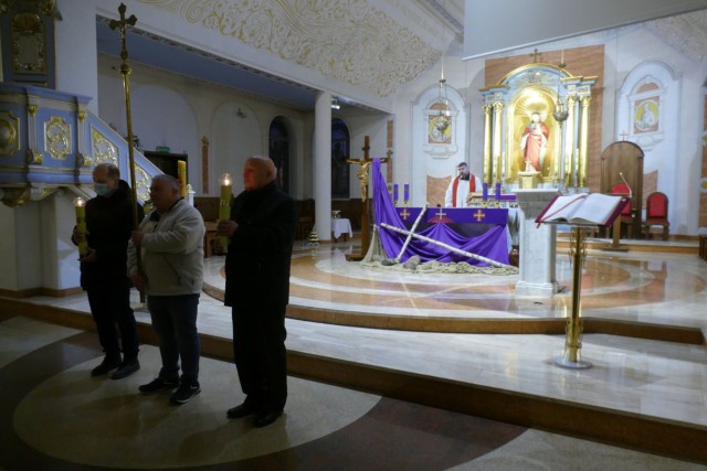 Osiemnastego marca nabożeństwo Drogi Krzyżowej przygotowało Męskie Koło Różańcowe pod wezwaniem Ostrobramskiej Matki Miłosierdzia wraz z ks. Danielem Jarzębskim.