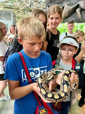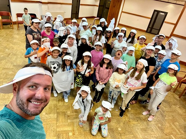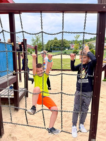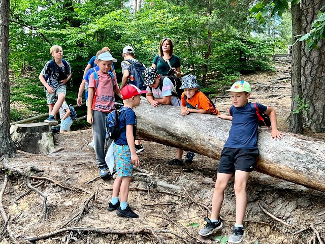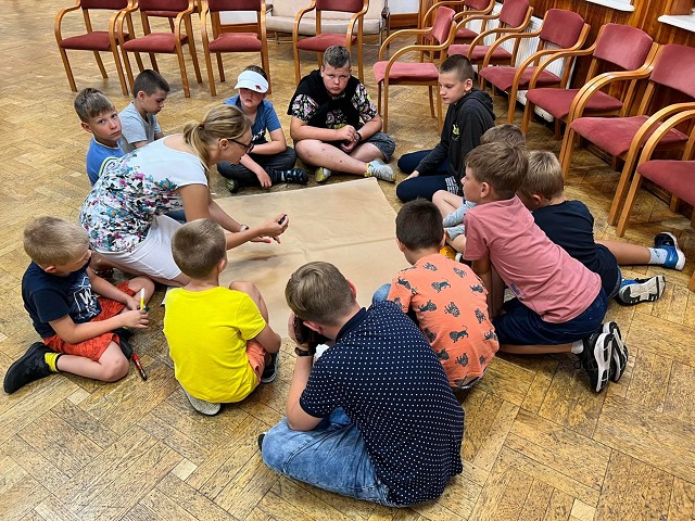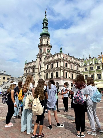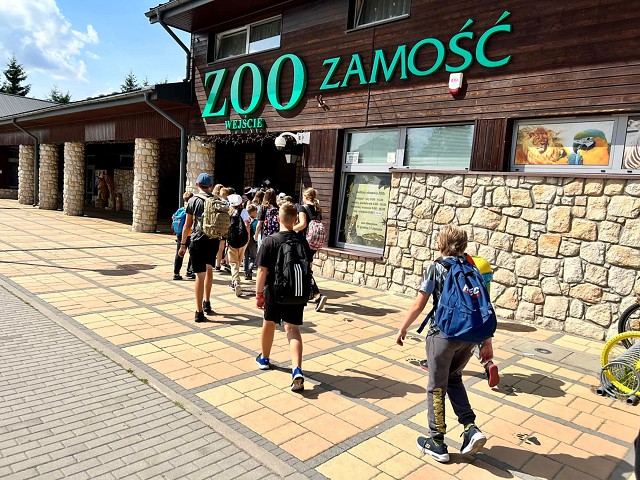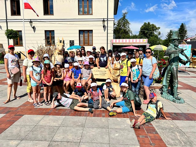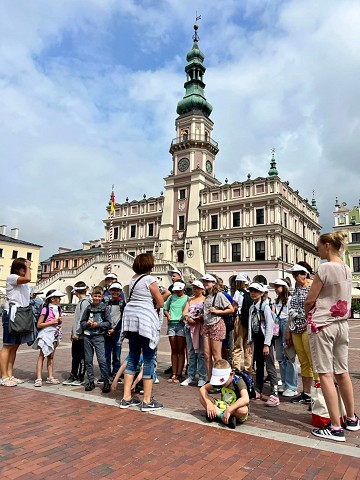 Koloniści wybrali się na tamtejszy taras widokowy, skąd mieli okazję obserwować przepiękną panoramę miasteczka. W trakcie spaceru po kransnobródzkim rynku podziwiali pokaz iluzjonisty, z niemałym drżeniem serca pasjonowali się okazami Parku Dinozaurów, zaś piękna pogoda zachęcała do kąpieli wodnych w miejscowym Zalewie. Z Krasnobrodu już niedaleko do zabytkowego, czarującego Zamościa, dlatego też kolonia bardzo chętnie zwiedziła i to miasto, atrakcyjnie spędzając czas chociażby na Starówce, czy też poszerzając swoją wiedzę przyrodniczą w zamojskim zoo. Co więcej, sympatyczna grupa wybrała się do znanego z literatury Szczebrzeszyna, aktywnie i ochoczo uczestniczyła w grze terenowej w Adamowie, popołudniami oraz wieczorami: tańczyła, spacerowała i niczym prawdziwe rybki pluskała się w znajdujących się na terenie ośrodka, w którym mieszkała basenach.