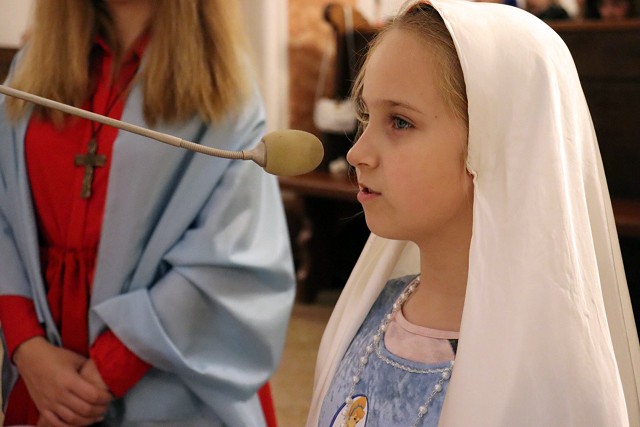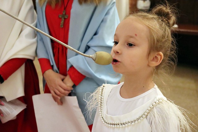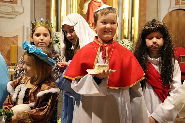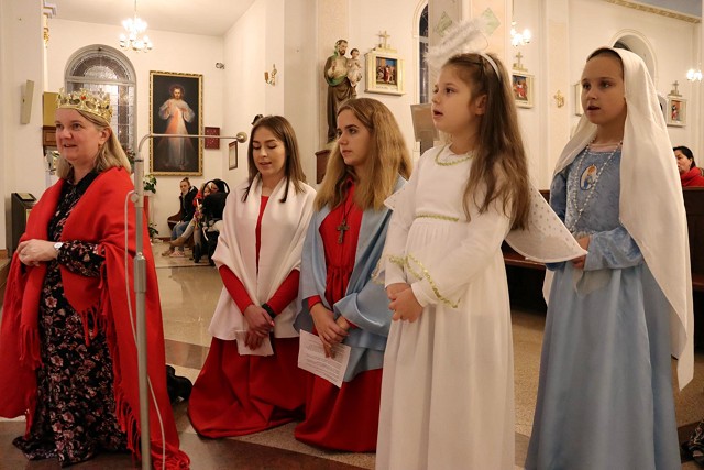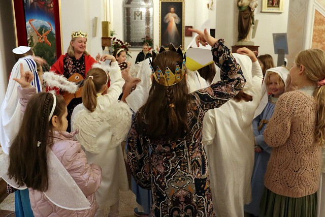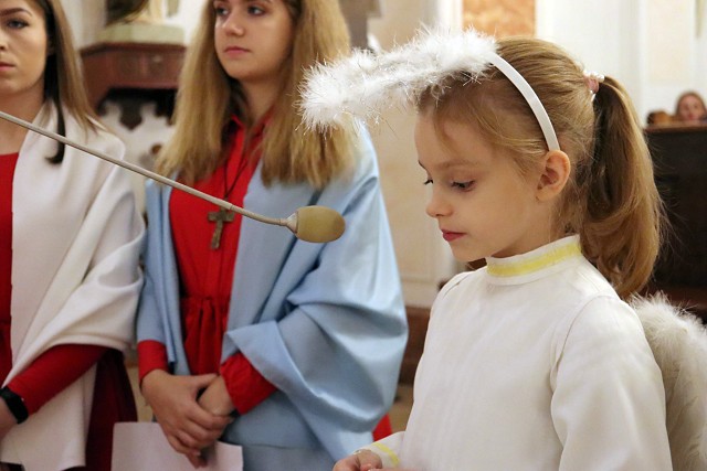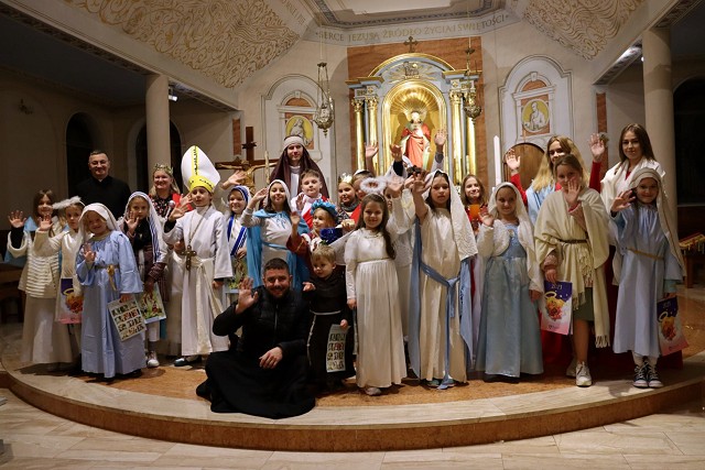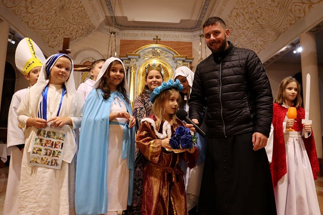 Po rozważaniach różańca świętego, w trakcie których pochyliliśmy się nad życiorysami wybranych świętych i błogosławionych, w czasie mszy świętej koncelebrowanej przez ks. proboszcza oraz ks. Łukasza wszyscy chętni mogli zaprezentować swoje piękne przebrania wybranych świętych/błogosławionych i szepnąć o nich słówko! Radosny śpiew naszych parafian (zwłaszcza tych najmłodszych!) potwierdził tylko werset znanej piosenki, iż "każdy święty chodzi uśmiechnięty!".