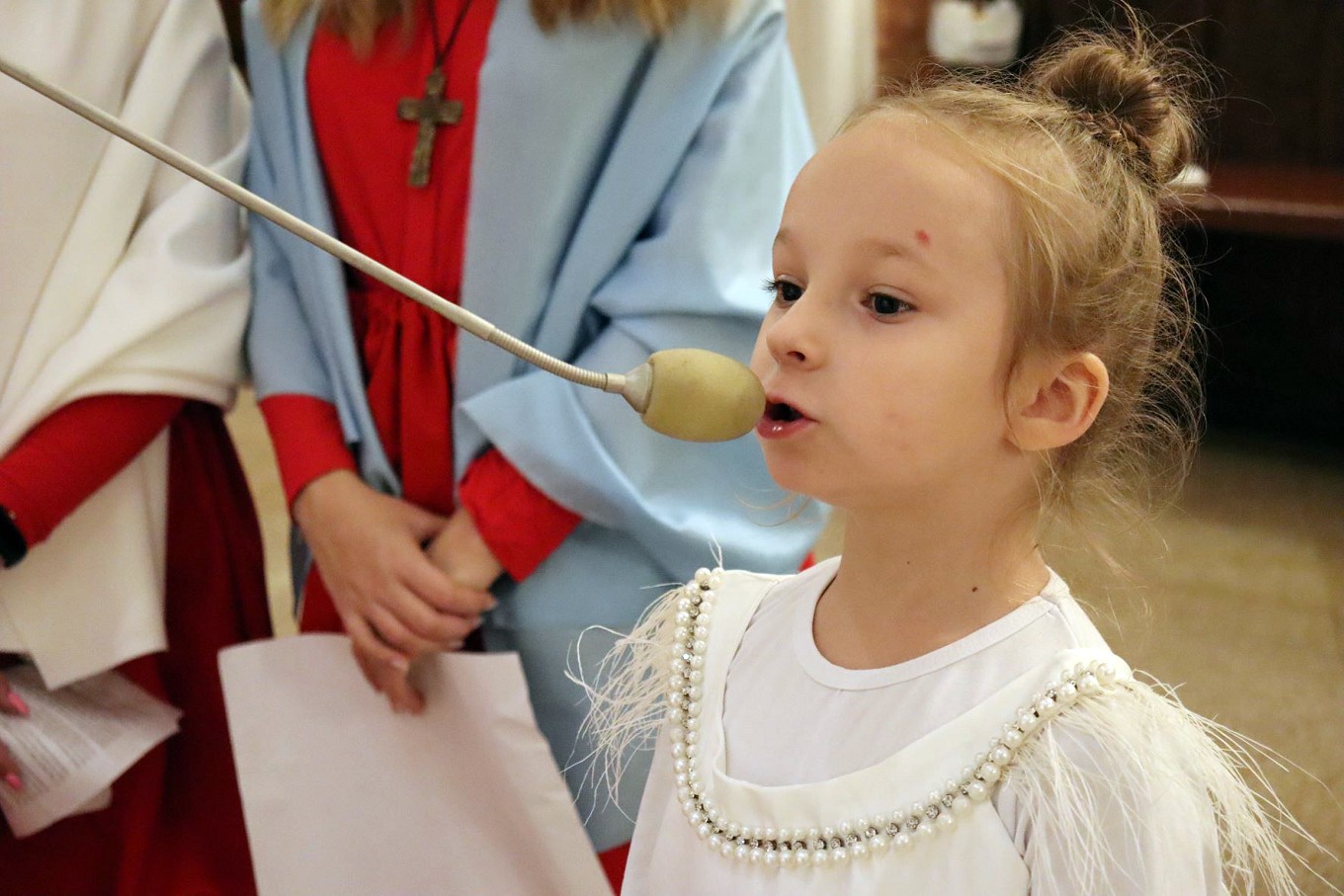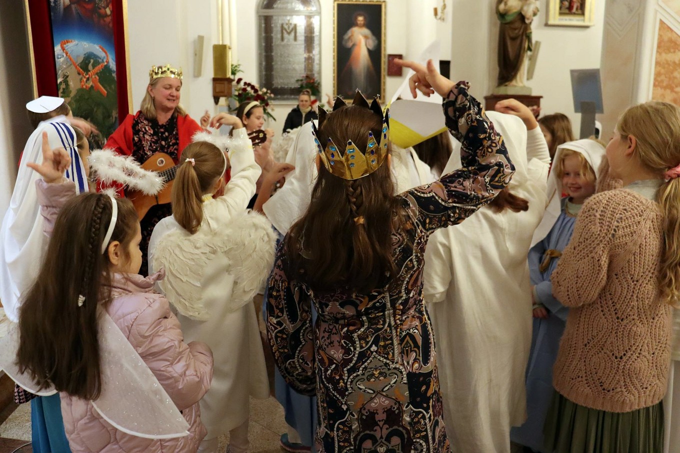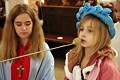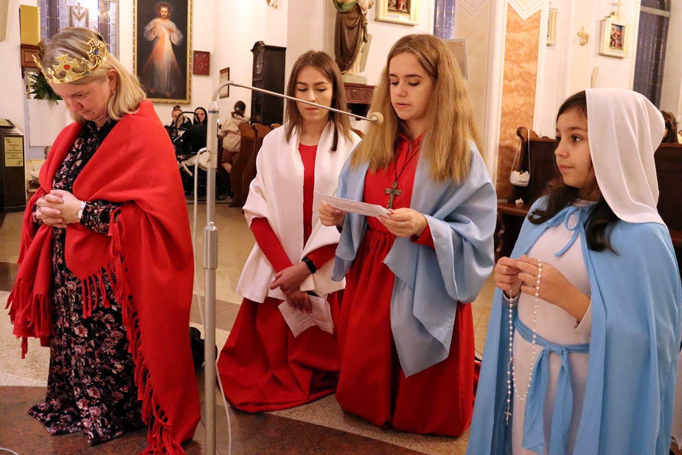 Po rozważaniach różańca świętego, w trakcie których pochyliliśmy się nad życiorysami wybranych świętych i błogosławionych, w czasie mszy świętej koncelebrowanej przez ks. proboszcza oraz ks. Łukasza wszyscy chętni mogli zaprezentować swoje piękne przebrania wybranych świętych/błogosławionych i szepnąć o nich słówko! Radosny śpiew naszych parafian (zwłaszcza tych najmłodszych!) potwierdził tylko werset znanej piosenki, iż „każdy święty chodzi uśmiechnięty!”.