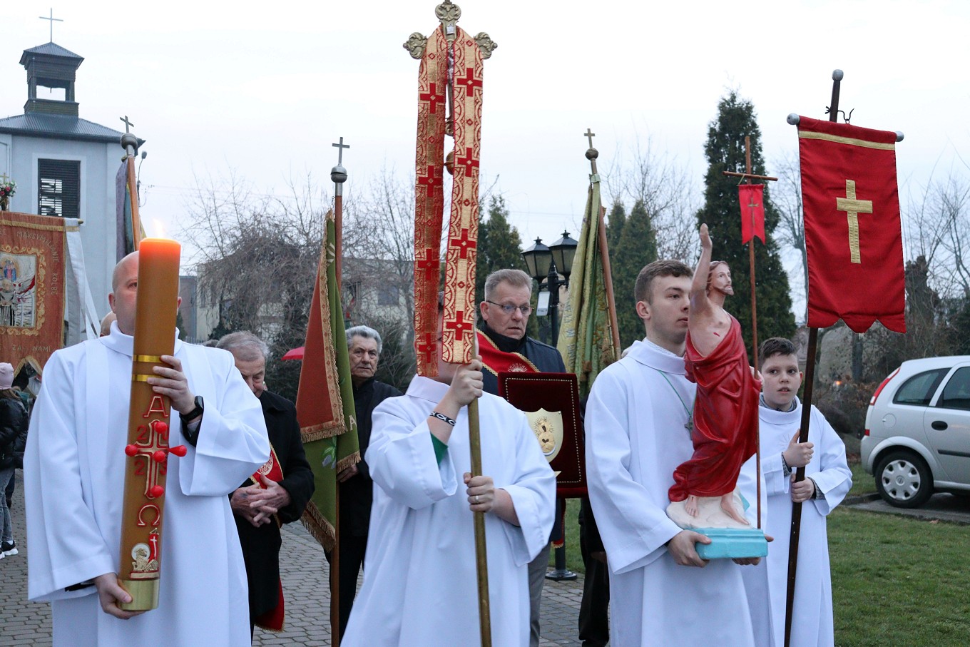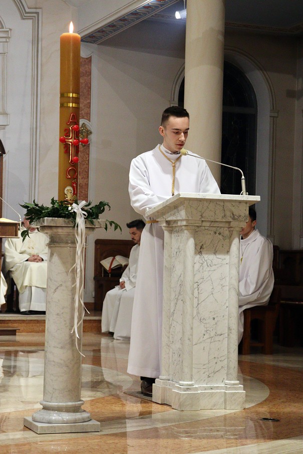 W sobotni wieczór, po zachodzie słońca, rozpoczyna się Wielka Noc. O godzinie 20 uczestniczymy w Liturgii Wigilii Paschalnej. Składa się ona z 4 części: Liturgii Światła (podczas której następuje poświęcenie ognia), Liturgii Słowa (ukazującą całą historię Zbawienia), Liturgii Chrzcielnej (podczas której zostają odnowione przyrzeczenia chrzcielne) i Liturgii Eucharystycznej (podczas której przyjmujemy Komunię Świętą - pokarm na życie wieczne). Obchody Wielkiej Nocy kończymy rano w Niedzielę Zmartwychwstania Pańskiego uczestnicząc w procesji rezurekcyjnej i ogłaszając całemu światu, że Chrystus prawdziwie zmartwychwstał.