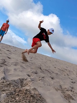 Na miejsce tegorocznych kolonii obrano Łebę, która oczarowała wszystkich swoim pięknem, jak i mnogością atrakcji turystycznych! Najmłodsi korzystając ze sprzyjającej pogody z radością zażywali kąpieli w morzu oraz w pobliskim Jeziorze Sarbsko, uczestnicząc przy okazji z zaangażowaniem w konkursie na najpiękniejsze rzeźbę z piasku! Pobyt nad morzem nie mógł obyć się także bez rejsu statkiem (tym razem był to piracki Gryf!) oraz wspinaczki na pobliską latarnię morską, z której rozciąga się malowniczy widok na najbliższą okolicę.