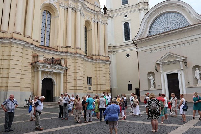 Wracając do samej stolicy - Wilno to od wielu wieków ważne centrum naukowe, więc w trakcie wędrówki nie sposób było pominąć wizyty na Uniwersytecie im. Stefana Batorego, w którym znaczącą rolę odgrywała także polska kadra naukowa. Świat literatury to oczywiście: Adam Mickiewicz wraz z grupą filomatów i filaretów, Juliusz Słowacki, Józef Ignacy Kraszewski, czy też ze współczesnych - Czesław Miłosz, ślady ich życia i działalności tomaszowscy pielgrzymi znajdowali w Wilnie niemalże na każdym kroku. Elementem charakteryzującym dany kraj jest także i jego kuchnia. Kulturę karaimską na Litwie tomaszowianie odkryli dzięki zapoznaniu się z XVIII - wieczną świątynią Kinessą, karaimskimi zabudowaniami, a także degustując tradycyjną potrawę kibiny, będących rodzajem pierogów nadziewanych mięsnym farszem podawanych często razem z rosołem.