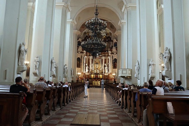 Najistotniejszym elementem każdej pielgrzymki jest wędrówka/podróż, a następnie nawiedzenie miejsc świętych, nie inaczej było także podczas naszej pielgrzymki. W czasie kiedy jeszcze bardzo "żywe" jest w nas echo jubileuszu 100-lecia powołania św. siostry Faustyny pątnicy mieli możliwość podążać śladami życia i działalności Apostołki Bożego Miłosierdzia i modlić się koronką w Sanktuarium przy Obrazie Jezusa Miłosiernego autorstwa Eugeniusza Kazimierowskiego z 1934 r. (w tym momencie warto wspomnieć, iż kopie wspomnianego obrazu zobaczyć można w wielu wieleńskich świątyniach, a także od 2 lat w bocznej nawie naszej parafii). Kościoły p/w św. Anny, św. Piotra i Pawła, św. Jana (zwany także Uniwersyteckim), Archikatedra w Wilnie, czy też kościół Nawiedzenia NMP we wspomnianych wcześniej Trokach z cudownym wizerunkiem Matki Boskiej Trockiej to kolejne punkty pątniczej wędrówki.