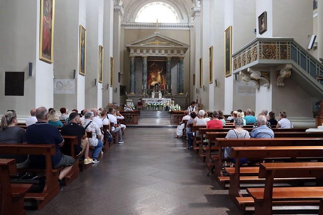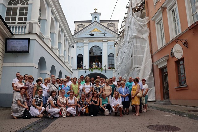 Lipcowe, wakacyjne dni stały się doskonałą okazją ku temu aby pielgrzymować, tym razem do Wilna, które z wielu powodów jest nam tak; bliskie, znajome, ważne. Będąc na Litwie nie sposób nie zachwycić się urokiem tamtejszej przyrody: polami, wzgórzami, jeziorami (które podziwiać możemy m.in. w wypoczynkowej, podwileńskiej miejscowości Troki), rzeką Niemen, czy też Wilią, a także ogromną powierzchnią terenów zielonych. Pielgrzymi nie zapomnieli o bohaterach narodowych, nawiedzając cmentarz na Rossie, czy też nieco mniej znany - żołnierski na Antokolu (warto w tym momencie dodać, iż już od kilkunastu lat próbka ziemi z Rossy znajduje się w miejscu Pamięci Narodowej mieszczącym się na terenie parafialnego placu).