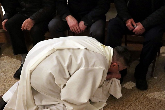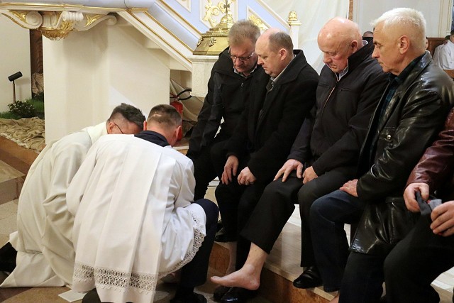 Pamiętając o słowach naszego Pana, że przewodnictwo w Kościele powinno się odbywać w duchu służby bliźniemu ksiądz proboszcz umył nogi 12 mężczyznom.