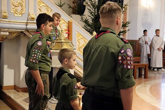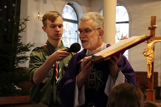 Zaprzyjaźnieni harcerze jak co roku uroczyście wnieśli Betlejemskie Światełko Pokoju, które możemy odpalić i zanieść do swoich domów, by jego blask i ciepło otoczyło wigilijny stół.