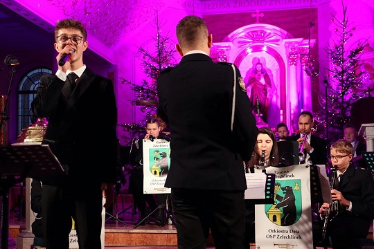 Radosny czas kolędowania w naszej Parafii trwa nadal. Tym razem swoistą ucztę duchową i kulturalną przygotowali nam druhowie z Orkiestry Dętej w Żelechlinku wraz z solistami pod batutą p. Kamila Wrony.
