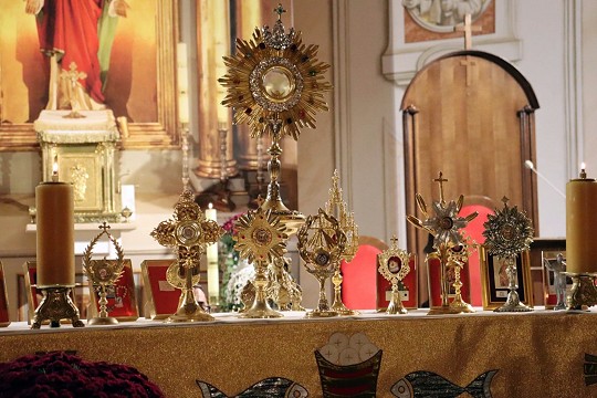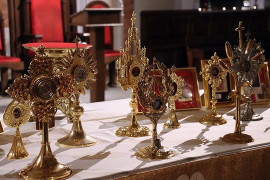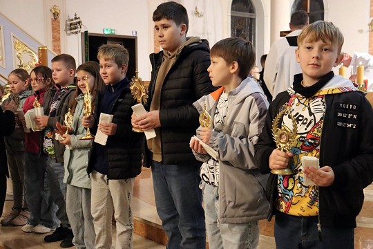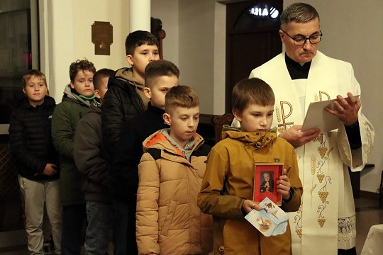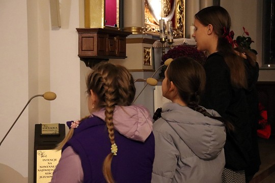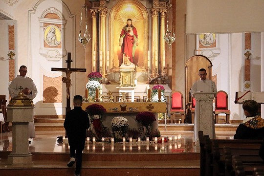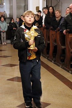 Po raz kolejny także w/w nabożeństwo w piękny i wzruszający sposób animowali najmłodsi parafianie! Kleryk Kacper przedstawił wszystkim zebranym sylwetki 21 świętych i błogosławionych, obecnych z nami tego wieczoru w relikwiach, odśpiewaliśmy Litanię do Wszystkich Świętych, modliliśmy się dziesiątką różańca, ks. Wiesław wzbogacił naszą wiedzę konferencją nt. świętości, o oprawę muzyczną nabożeństwa zadbały wspaniałe scholanki wraz z p. katechetką Moniką, każdy z przybyłych do naszej świątyni mógł ucałować relikwie, a także ...poczęstować się tzw. Bożą krówką, w której znajdował się cytat świętego, który winien przyświecać każdego dnia!
