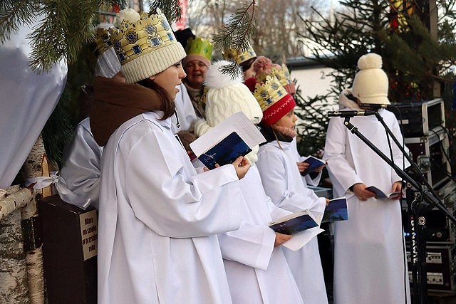 XIII Tomaszowski Orszak Trzech Króli okazał się być niezwykłym - duchowym i artystycznym Świętem! Trzej Mędrcy (Pierwszy - z Parafii św. Jadwigi Królowej, Drugi - z Parafii św. Rodziny, który podróżował angielskim autobusem! oraz Trzeci - przybyły wraz z Parafią NMP Królowej Polski i Sanktuarium św. Antoniego) przy nastrojowym akompaniamencie kolęd i pastorałek w wykonaniu Stowarzyszenia "Nadzieja" spotkali się na naszym parafialnym placu, aby oddać pokłon Dzieciątku Jezus. Sama scena pokłonu - inna niż wszystkie dotychczas, angażująca: diabły, aniołki, trębacza, "żywą" św. Rodzinę, oczywiście 3 Mędrców ze Wschodu a nawet parafialnego osiołka, a wszystko to okraszone wdzięcznym śpiewem naszej scholki dziecięcej oczarowała przybyłych!
