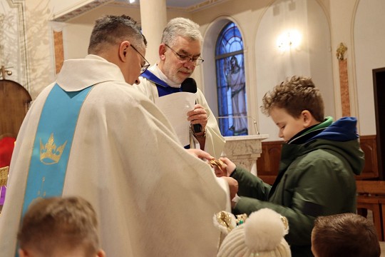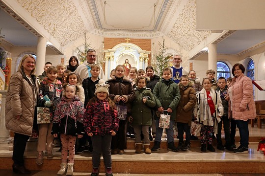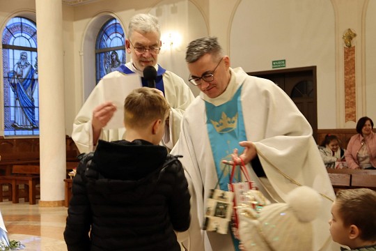 Po zakończonej Eucharystii ks. Wiesław, wraz z ks. Proboszczem oraz Panią katechetką Moniką ogłosili wyniki dwóch konkursów: na najpiękniejszy lampion (lampiony te ozdobią naszą tegoroczną szopkę) oraz na najpiękniejszą bombkę (jak możemy zauważyć, piękne wytwory dzieci już zdobią jedną z parafialnych choinek!).