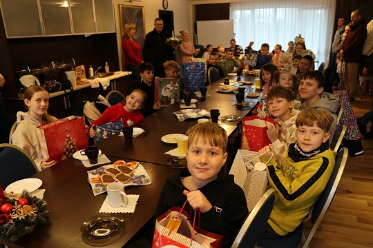 Ale to nie koniec porannych wzruszeń! Najmłodsi parafianie delektując się pysznym śniadaniem otrzymali w ramach inicjatywy "Drzewko dobra" przepiękne prezenty za uczestnictwo we mszach świętych roratnich!