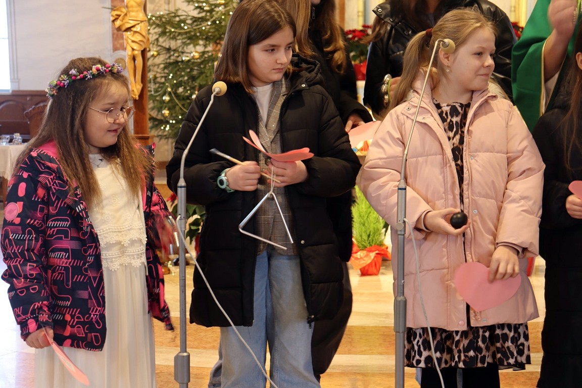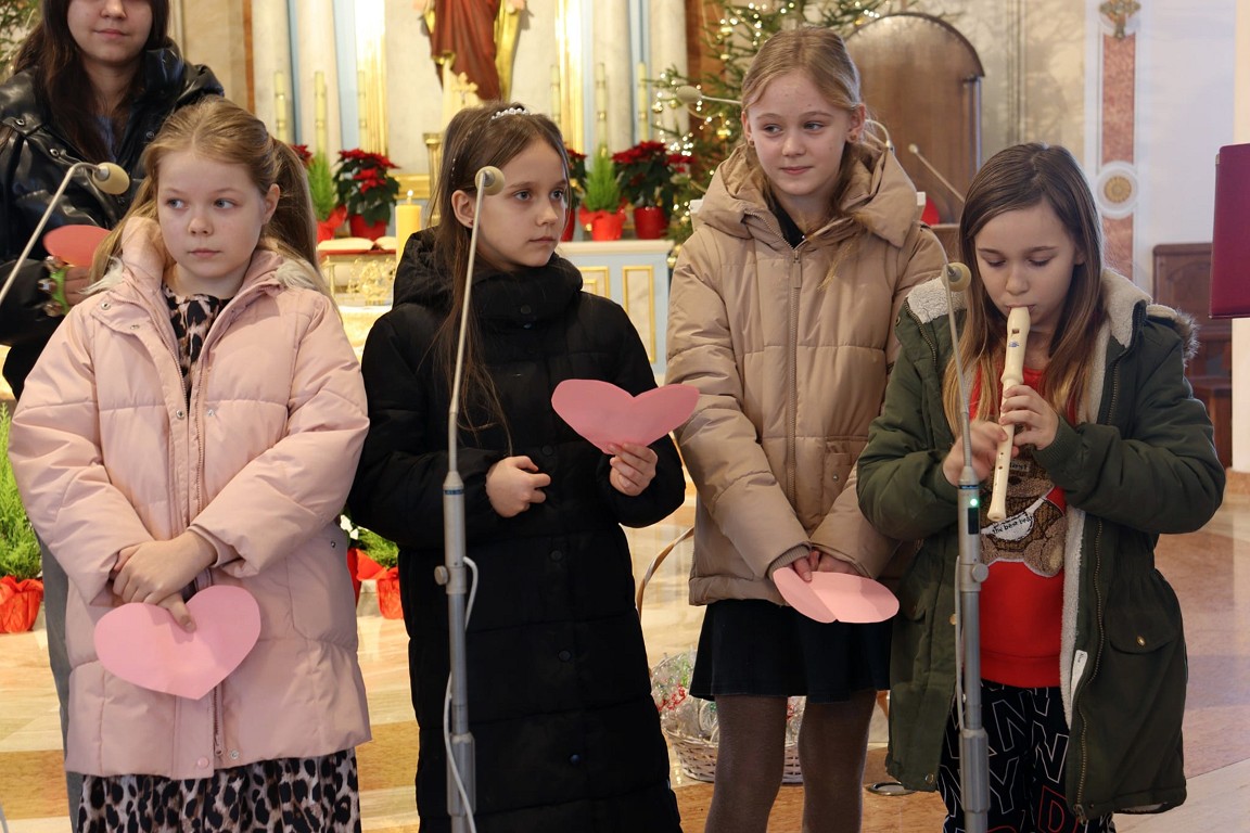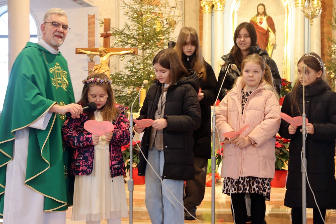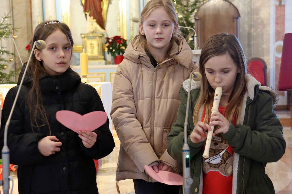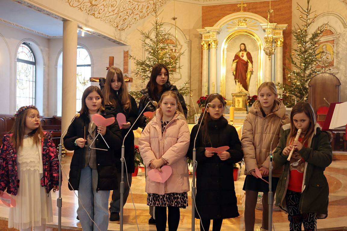Dlatego też wnuczęta - czyli najmłodsi parafianie zaprosili Drogich Seniorów na mszę św., gdzie modlono się w ich intencji. Po zakończonej Eucharystii dziewczynki z parafialnej scholki przedstawiły brawurowo program artystyczny, wypełniony: wierszami, życzeniami oraz pięknymi kolędami, który wywołał niejedno wzruszenie babć i dziadków.