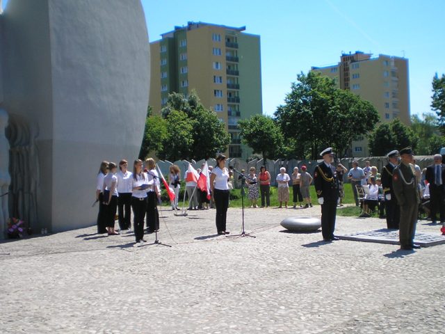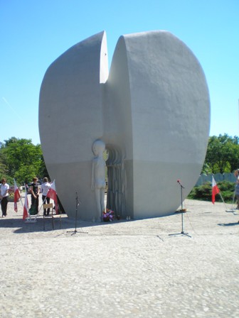 południe pod pomnikiem Pękniętego Serca Matki w Łodzi, będącego