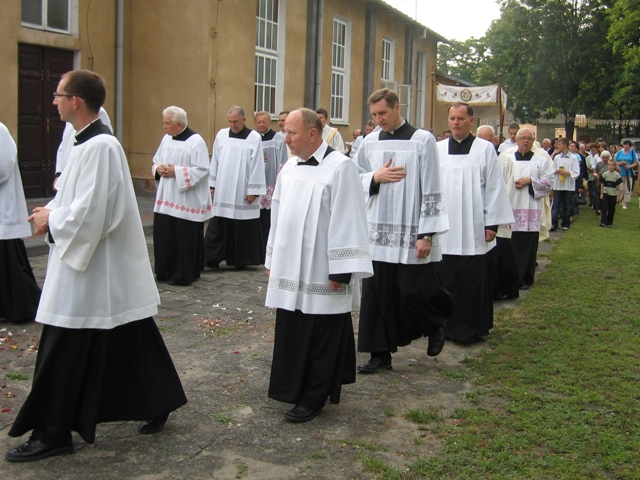 uroczystość również licznie przybyli zaproszeni kapłani. Msza Święta została zakończona procesją eucharystyczną. |