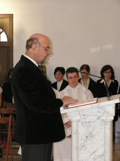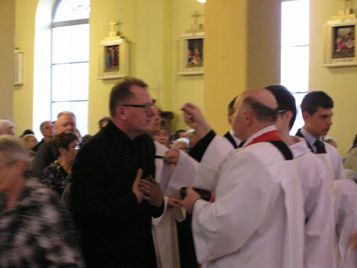 wszyscy wstają i zaczyna się modlitwa prezbitera oraz liturgia