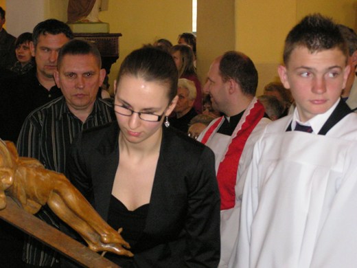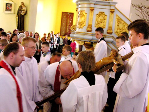 adoracja krzyża, czyli druga część wielkopiątkowej liturgii.