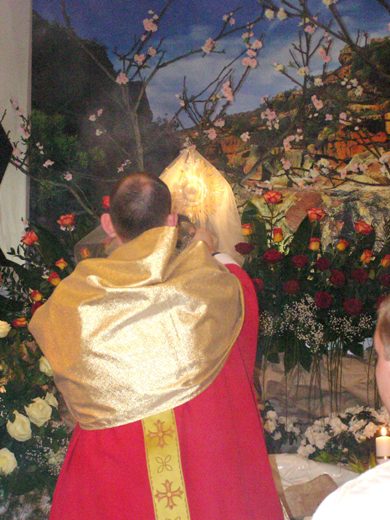 Monstrancja a nie figura Chrystusa jest centralnym punktem, ku