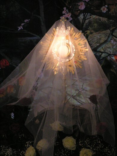 Monstrancja zostaje okryta welonem na pamiątkę całunu, w który