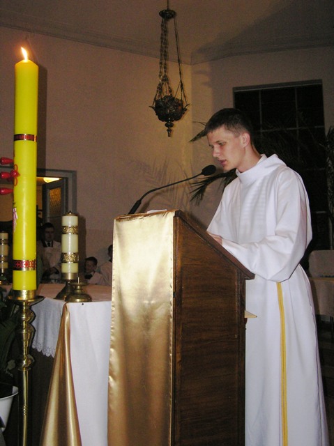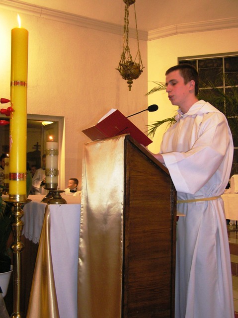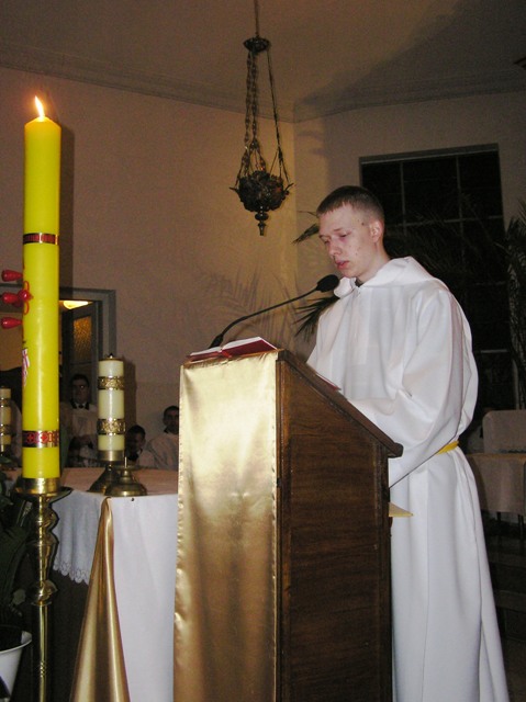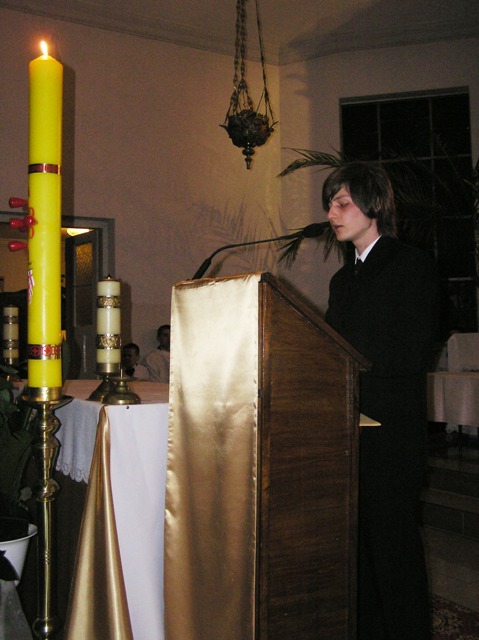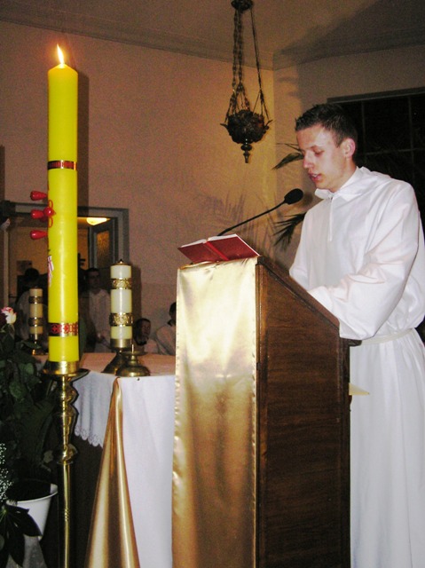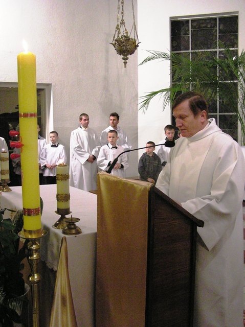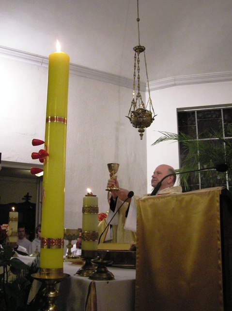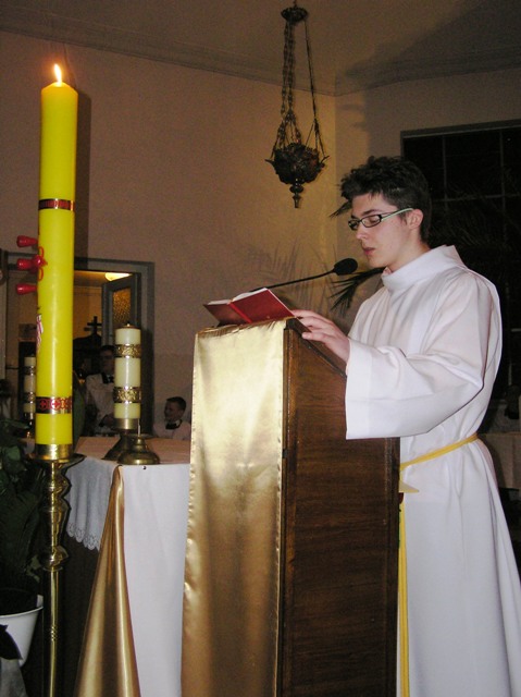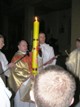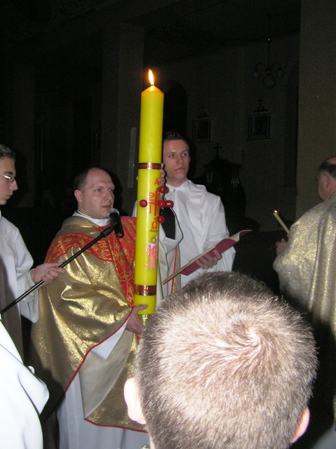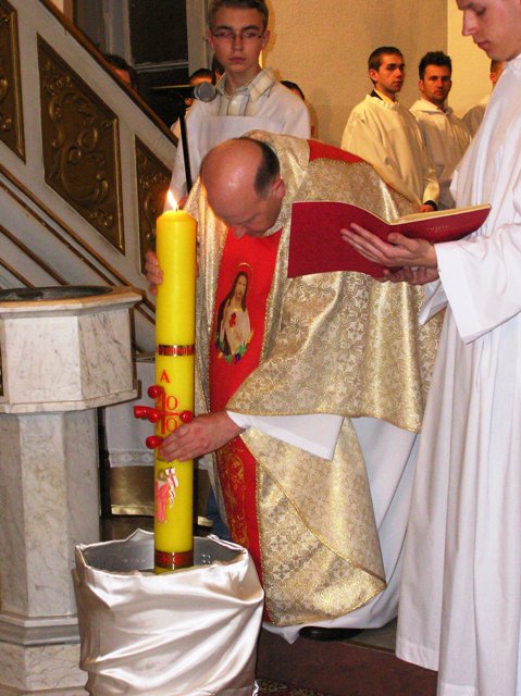 Po wniesieniu światła kapłan wyśpiewuje Exultet, czyli orędzie