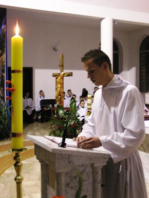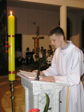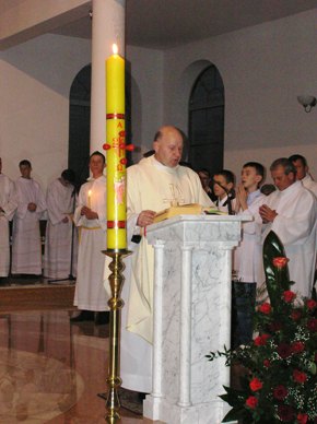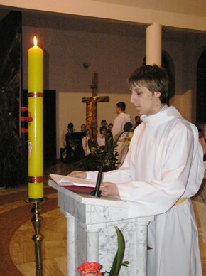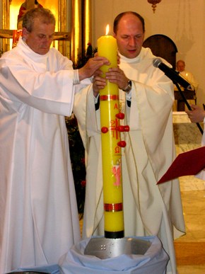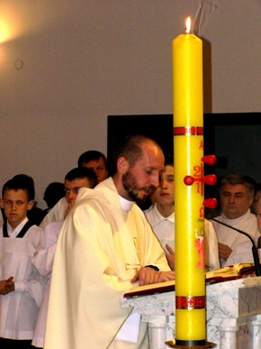 Po wniesieniu światła kapłan wyśpiewuje Exultet, czyli orędzie