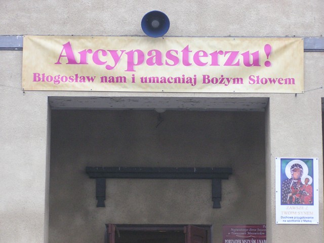 wiernymi czekali przy bramie od ul. Spalskiej przed Mszą świętą